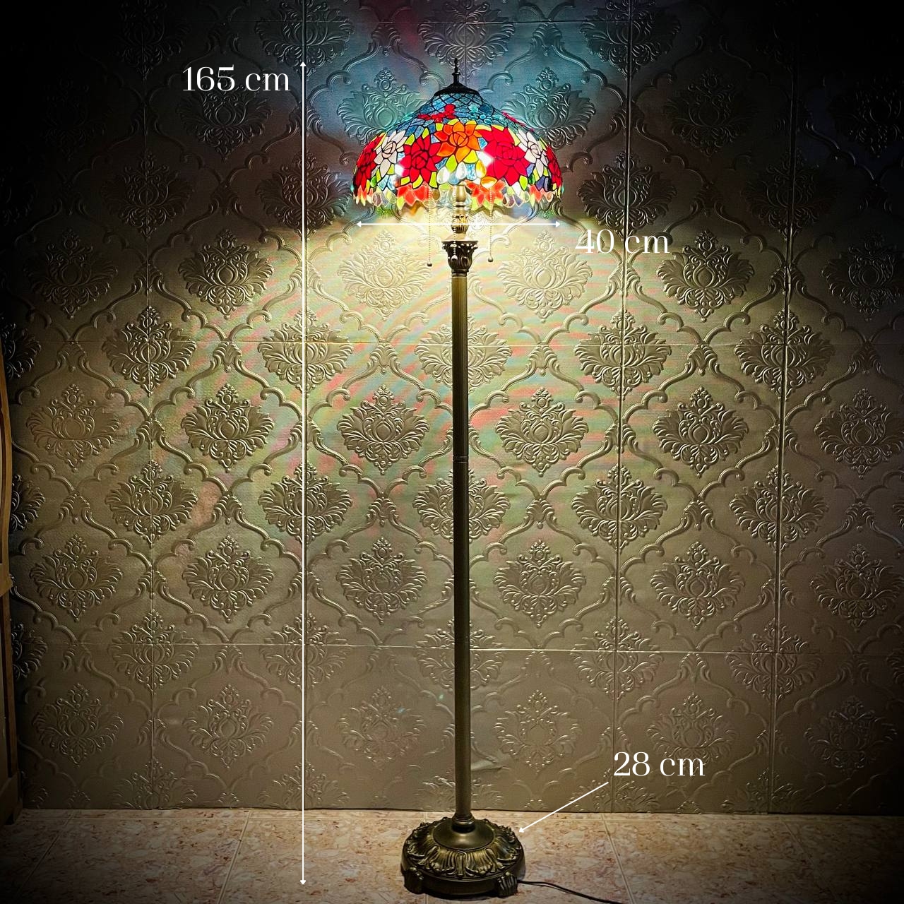 - Chiều cao: 165 cm (từ đế đến đỉnh chao đèn)